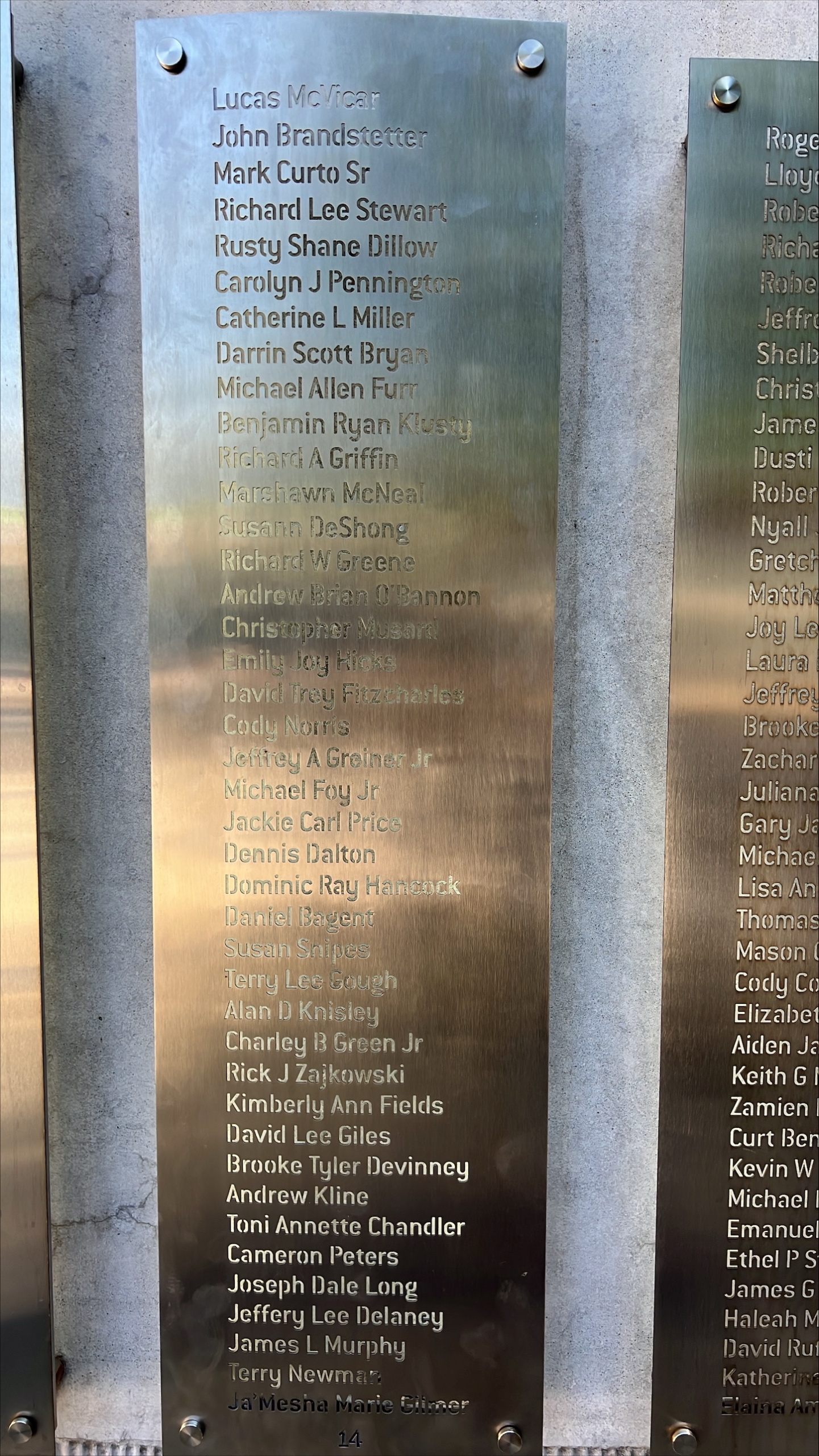 Use the diagrams to locate Kimberly Ann Fields’s name on the Donor Memorial.